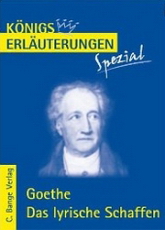 er Band Goethe. Das lyrische Schaffen aus der Reihe Königs Erläuterungen Spezial ist eine verlässliche und bewährte Interpretationshilfe für Schüler und weiterführende Informationsquelle für Lehrkräfte und andere Interessierte: verständlich, übersichtlich und prägnant. Mithilfe der ausführlichen Informationen zu Leben und Werk des Autors, einer Einführung zum lyrischen Schaffen sowie Interpretationen der wichtigsten Werke (Gedichte) sind Schüler fundiert und umfassend vorbereitet auf Abitur, Matura, Klausuren und Referate zu diesem Thema. Der erste Teil des Buches gibt einen Überblick zur Biografie sowie zum zeit- und literaturgeschichtlichen Hintergrund Johann Wolfgang von Goethes.Im zweiten Teil wird zunächst auf Besonderheiten seiner Lyrik eingegangen und anschließend an ausgewählten Gedichten deren Entstehung, zeitlicher Hintergrund und Zusammenhang mit dem Weltbild des Dichters dargestellt.