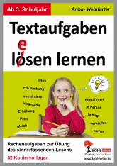 Textaufgaben l(e)ösen lernen Mathe Kopiervorlagen für die Grundschule mit Lösungen von Armin Weinfurter Artikel-Nr:10871 ISBN-Nr:3-86632-871-0 Oft stoßen Schüler beim Bearbeiten von Textaufgaben auf Probleme. Die Ursache besteht nicht darin, dass die verschiedenen Rechenoperationen nicht ausgeführt werden können, sondern im mangelnden Verstehen des Textes. Es fehlt die Fähigkeit zur Entnahme der Informationen aus dem vorliegenden Aufgabentext – Begriffe werden nicht verstanden! Genau hier setzt der vorliegende Band an: Das sinnerfassende Lesen verschiedenster Textaufgaben wird trainiert! Der umfassende Übungsteil beschäftigt sich mit der Begriffsbildung, dem Erlesen der Informationen und daraus resultierenden Rechenoperationen. Bald werden Ihre Schüler sagen: „Textaufgaben? Kein Problem!“ Einsatz im 3.-5. Schuljahr. |